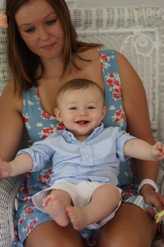 Saturday we drove to South Carolina for my cousin's wedding. It was a beautiful day and the wedding was at a gorgeous old plantation house. Hudson was good during the ceremony because it was outside (his favorite place to be) and aunt Bec Bec rocked him in a rocking chair. Hudson also did great on the car ride down but got a little agitated when our 2.5 hour trip turned into a 3.5 hour trip when we missed our exit. We got to see a lot of small small towns in NC and SC along the way. For awhile there weren't even lines on the roads that we were driving on. I think we need a new GPS. :) Zach's i Phone could have been helpful if AT&T's service wasn't so horrible. He had no service the entire time that our GPS was telling us to turn into graveyards and down dirt roads etc.! Here are some pics from the day.